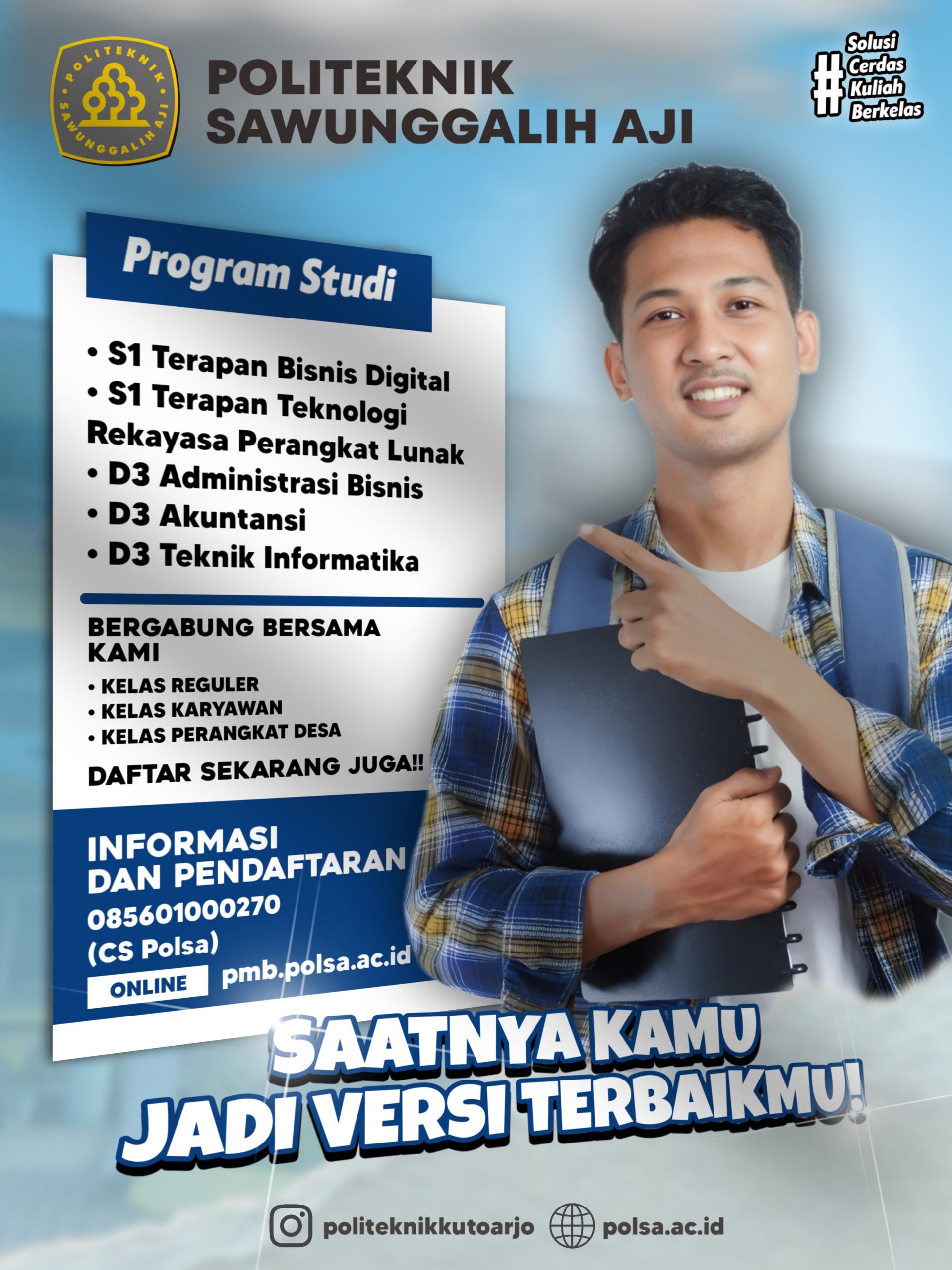Resmi diluncurkan pada Senin lalu ( 5/8/2025), mahasiswa Politeknik Sawunggalih Aji (Polsa) mengikuti Entrepreneurship Bootcamp yang merupakan bagian dari program PLUT Academy 2025. Program yang digawangi oleh UPT PLUT KUMKM Kabupaten Purworejo ini merupakan hasil kolaborasi strategis dengan Politeknik Sawunggalih Aji dan tiga perguruan tinggi lainnya di Kabupaten Purworejo. EntrepreneurshipBaca lanjut