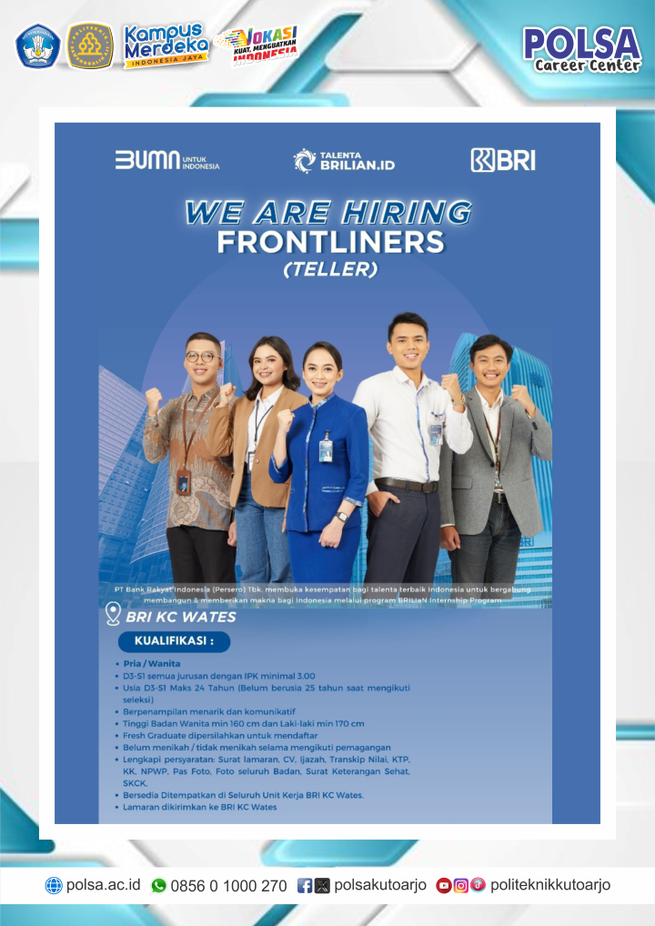 BRI KC PURWOREJO: LOKER PETUGAS IT & TELLER